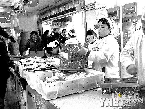 昨天一早,稻香村安定门店已经排了100多人的队伍。一对新婚夫妇说,“今天回娘家,其余礼物都备好了,就差点心匣子了,这不8点就过来排队买吗。”稻香村的销售负责人表示,随着春节传统习俗的回归,曾经被市场冷落了的点心盒,近两年又成为新的时尚。由于厂家已停产礼盒,所有产品都发往门店,全靠100多家门店之间调剂。灯市口店内的礼盒被调到销售猛增的望京店,石景山店富余出的京八件被调回安定门老店,昨天稻香村的销售经理一直在调货。